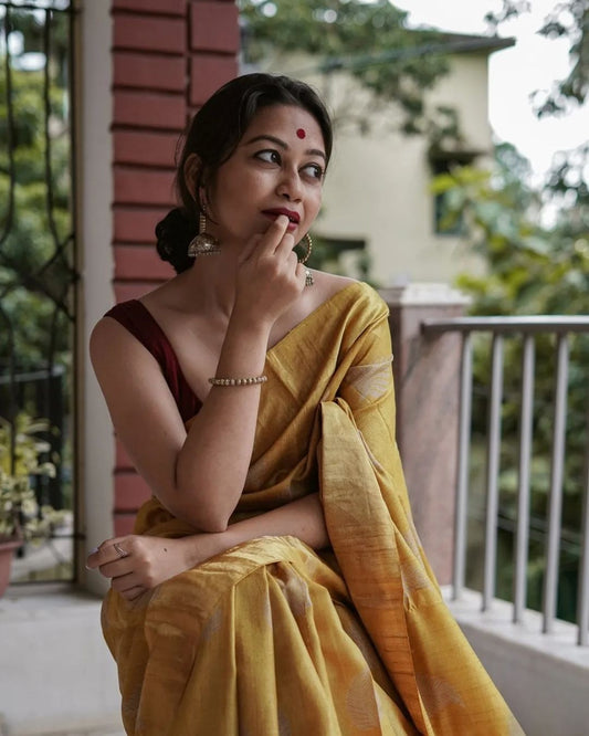 Traditional Woven Linen Cotton Saree – Graceful and Lightweight