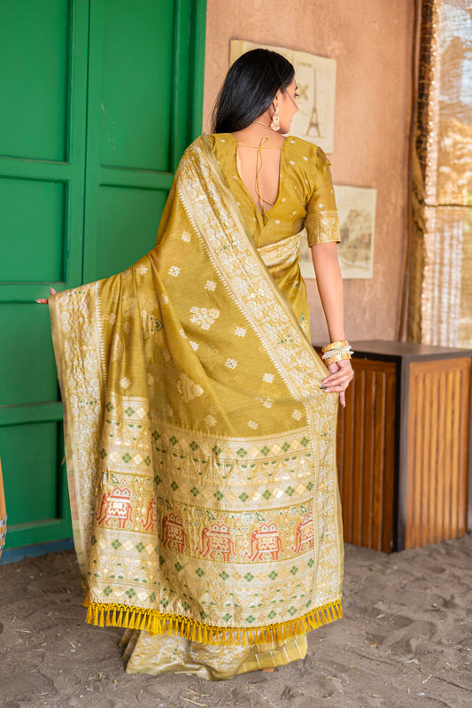 Celebrate in Style – Soft Linen Cotton Silk Saree with Rich Jacquard Weaving
