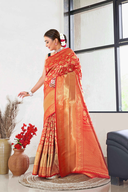 Premium Banarasi Soft Silk Saree with Exquisite Gold Zari & Heavy Brocade Detailing