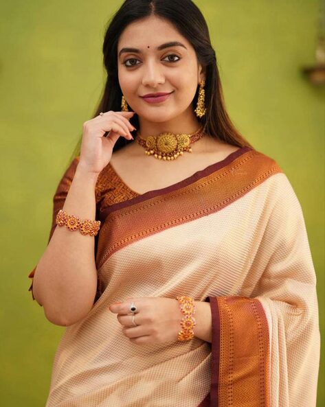 Banarasi Silk Saree in Soft Finish – Copper Zari Highlights & Classic Jacquard Weave
