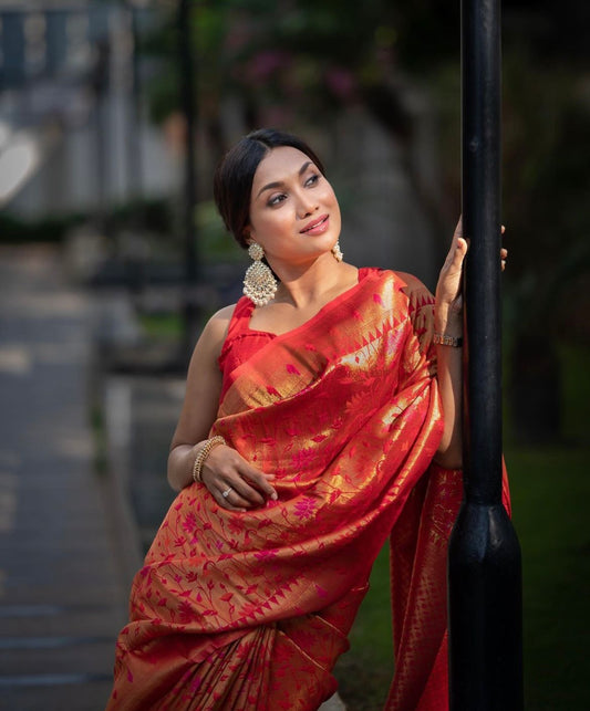 Punch Handcrafted Banarasi Soft Silk Kanjivaram Saree with All-Over Zari Work