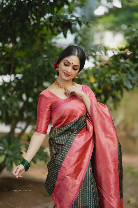 Elegant Banarasi Soft Silk Saree with Copper Zari Weaving