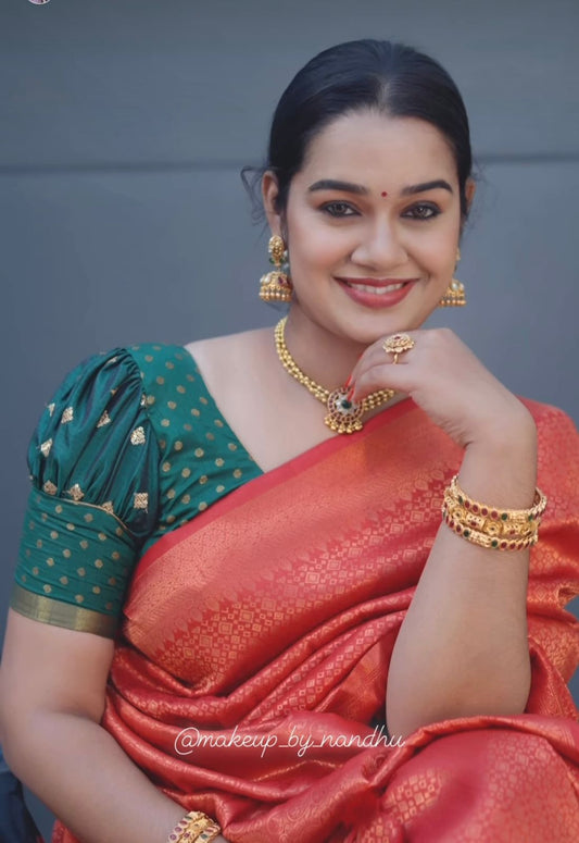 Regal Kanjivaram Silk Saree by Shakuntala – A Classic Tale of Tradition & Elegance