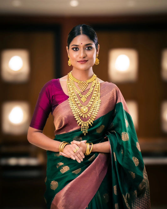 Exquisite Banarasi Soft Silk Saree with Zari Motifs & Jacquard Weave