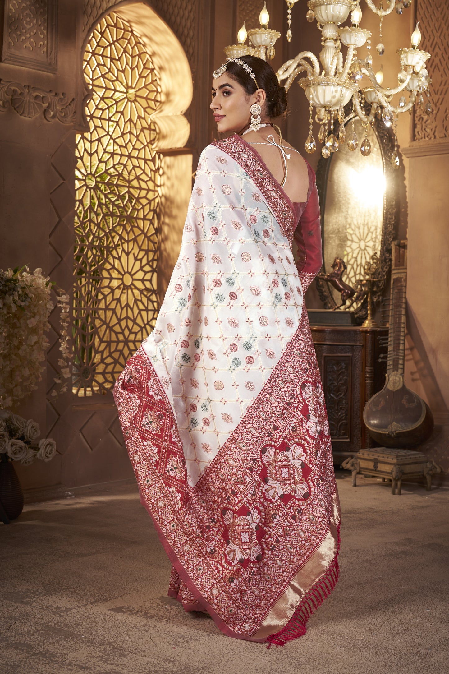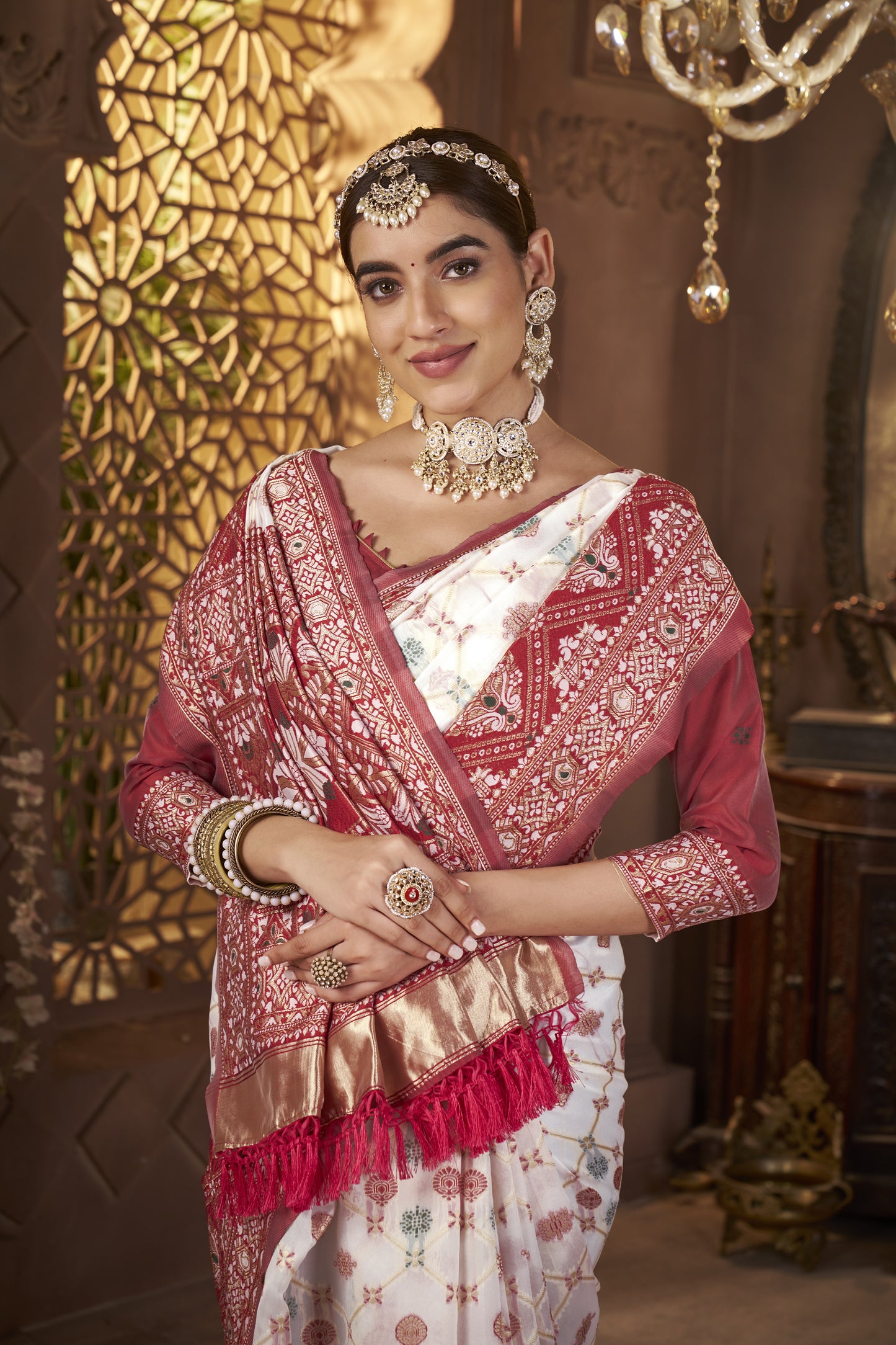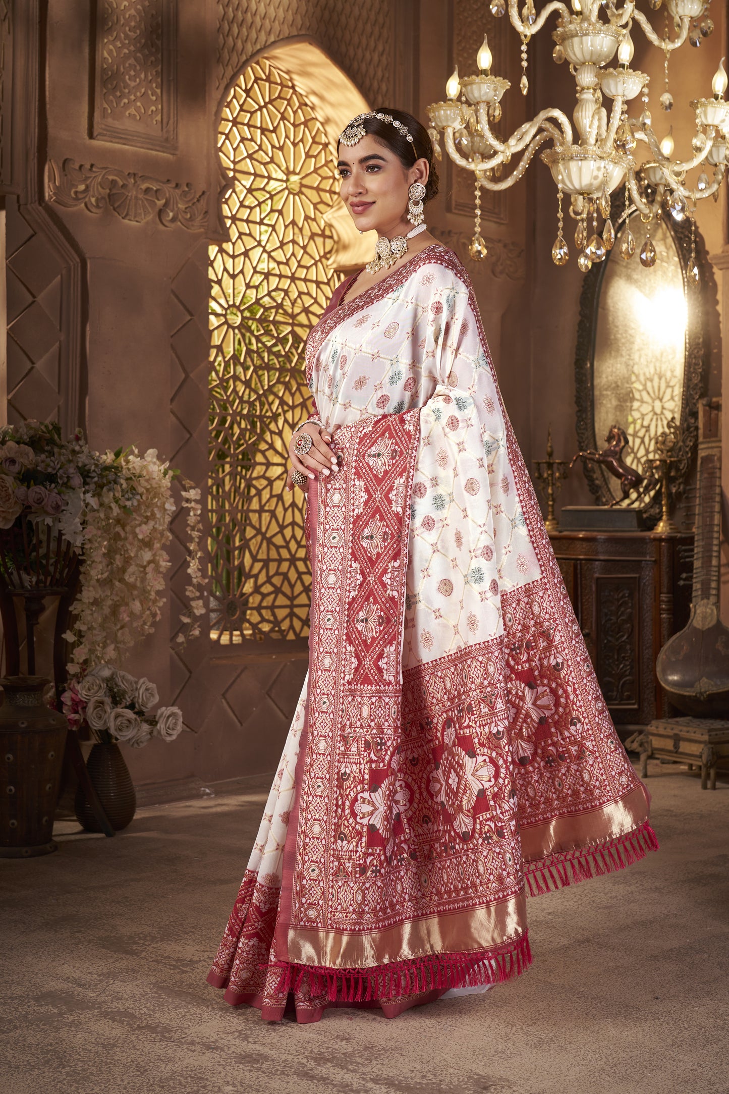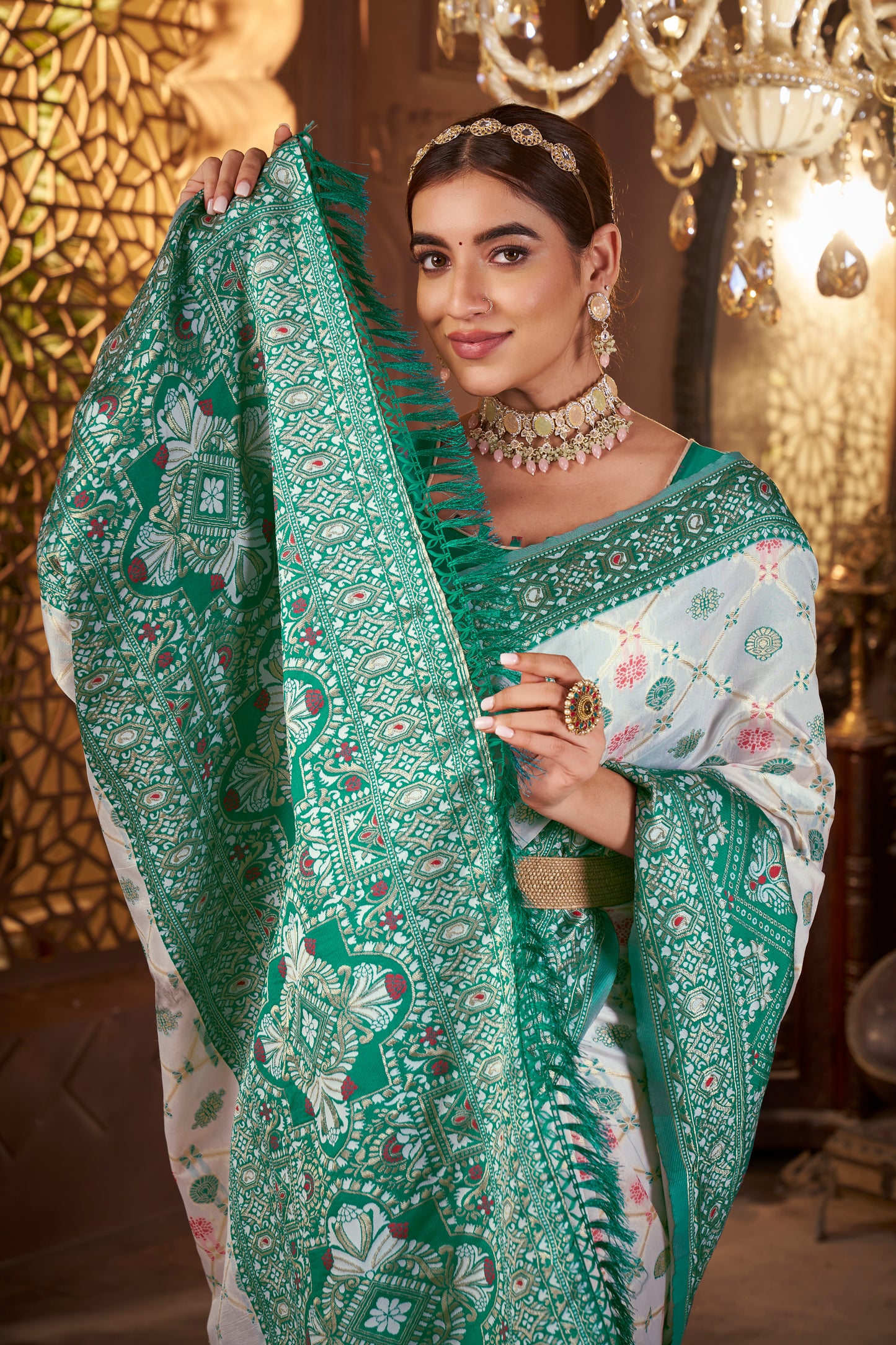 • Weaving: Gold zari weaving