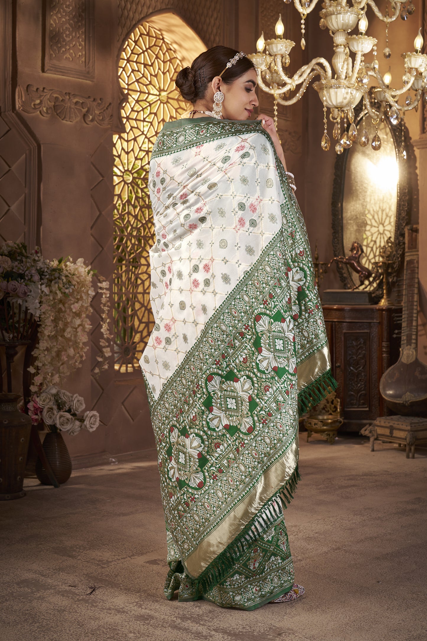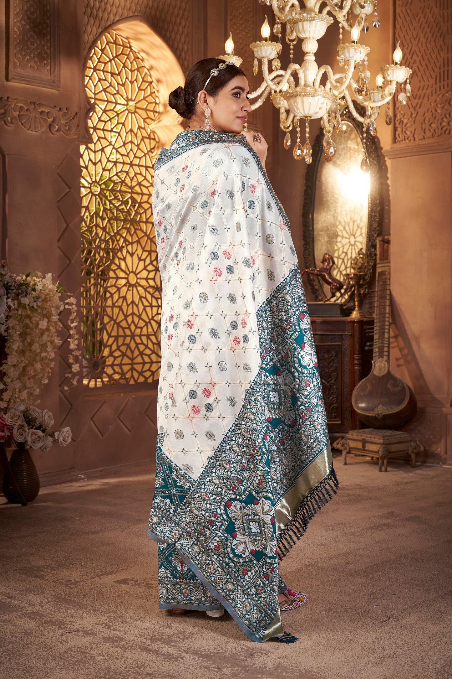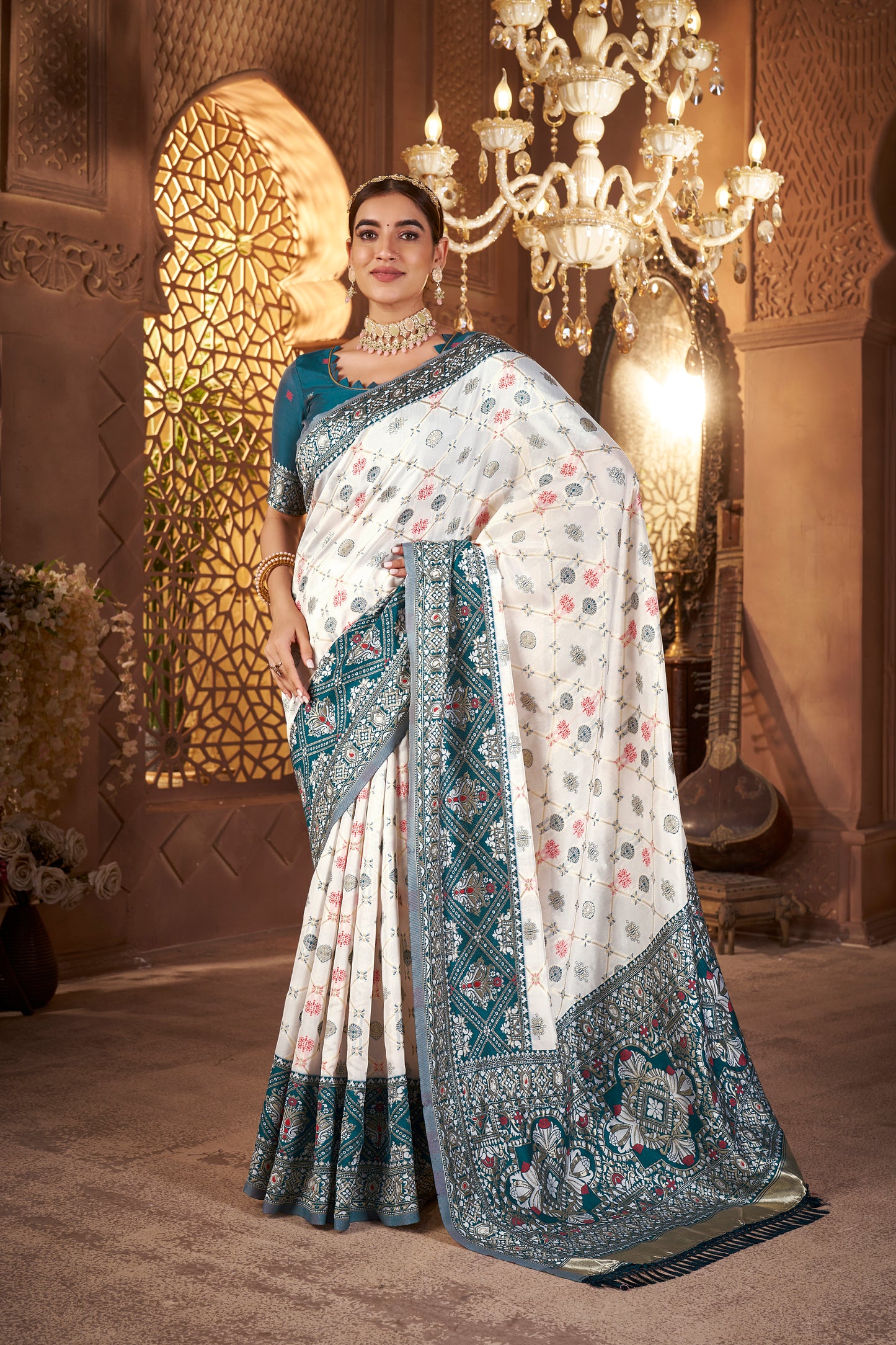 • Weaving: Gold zari weaving