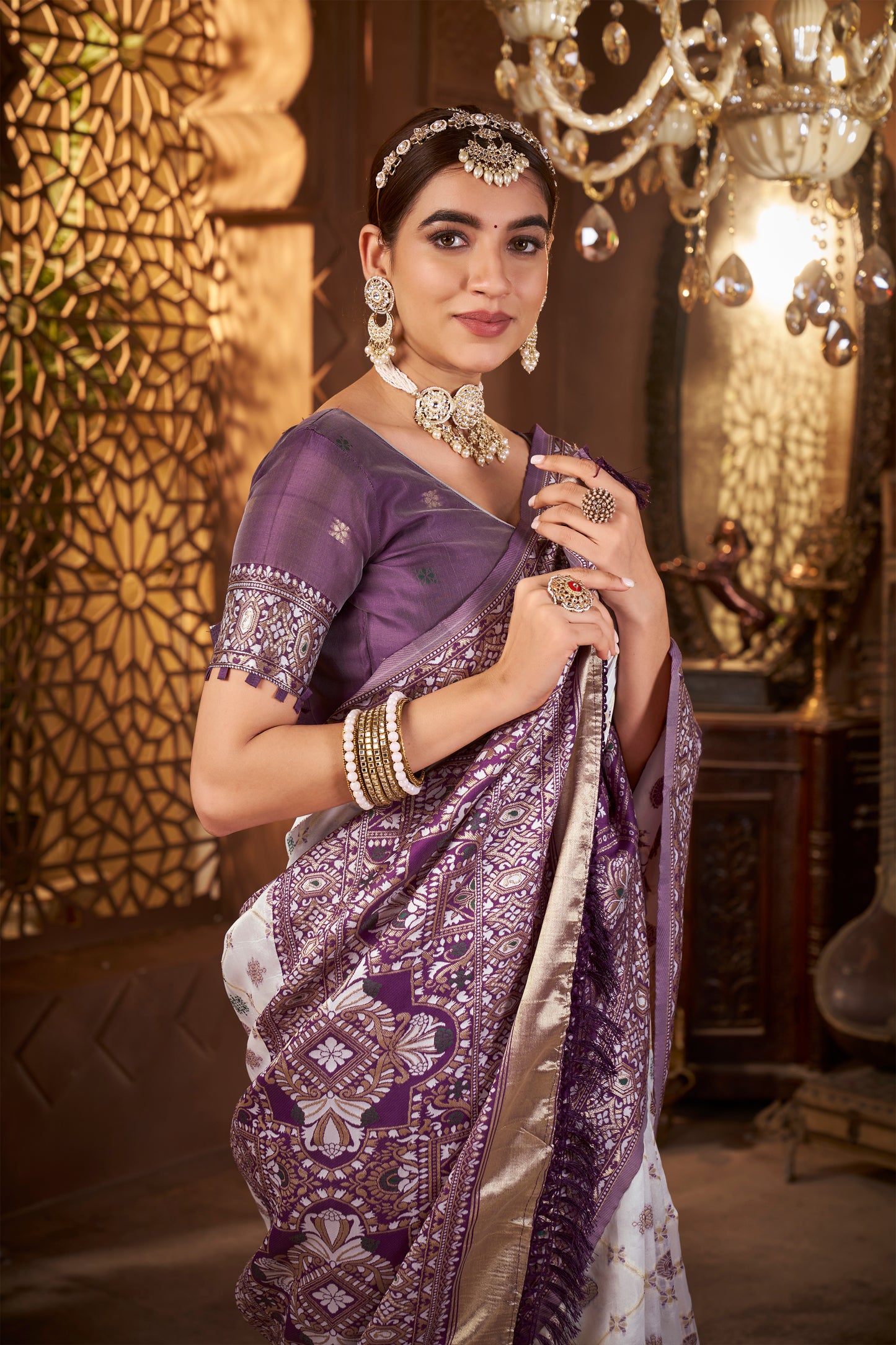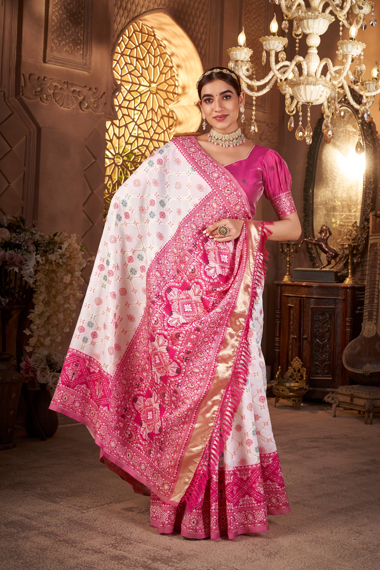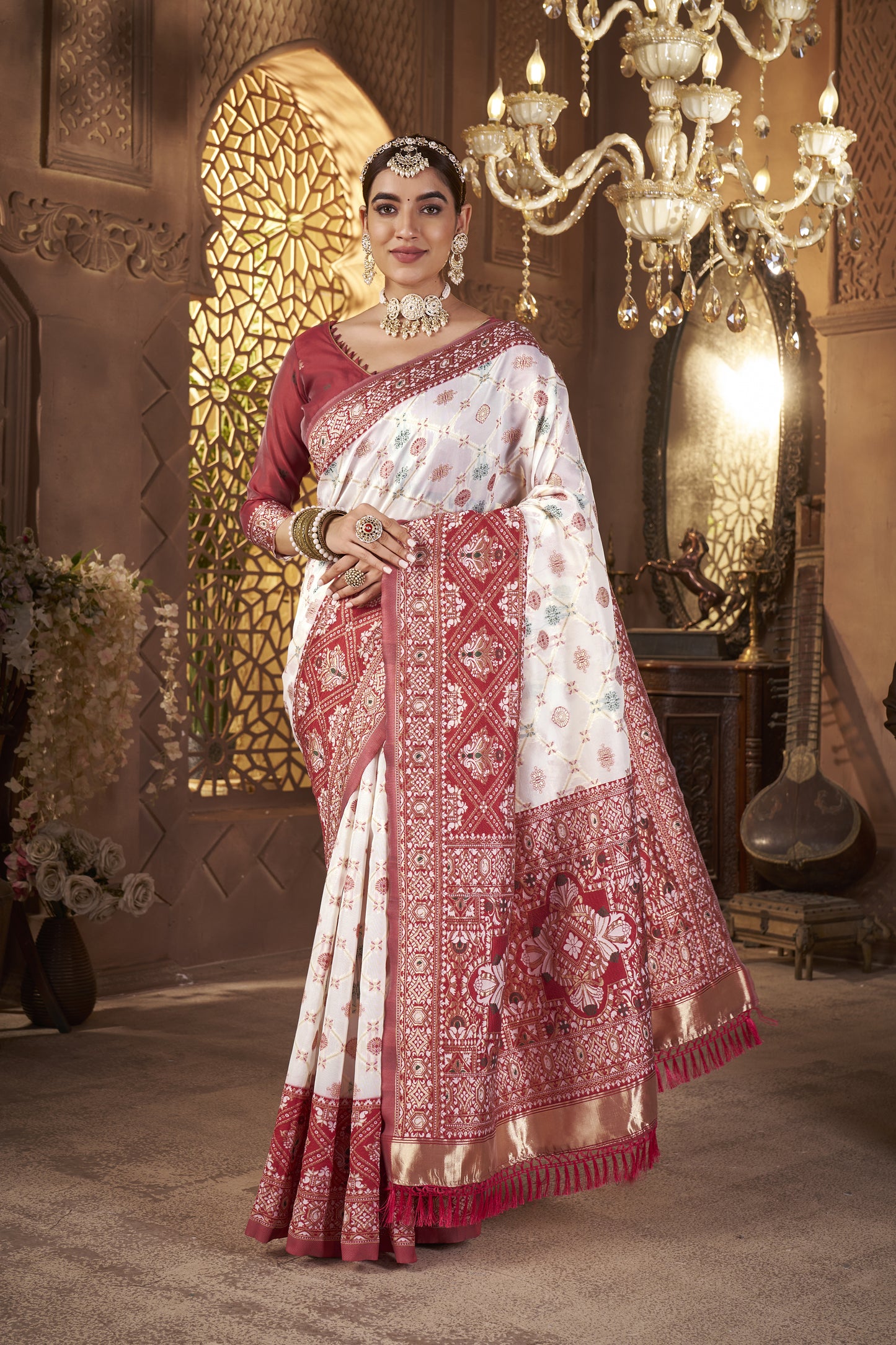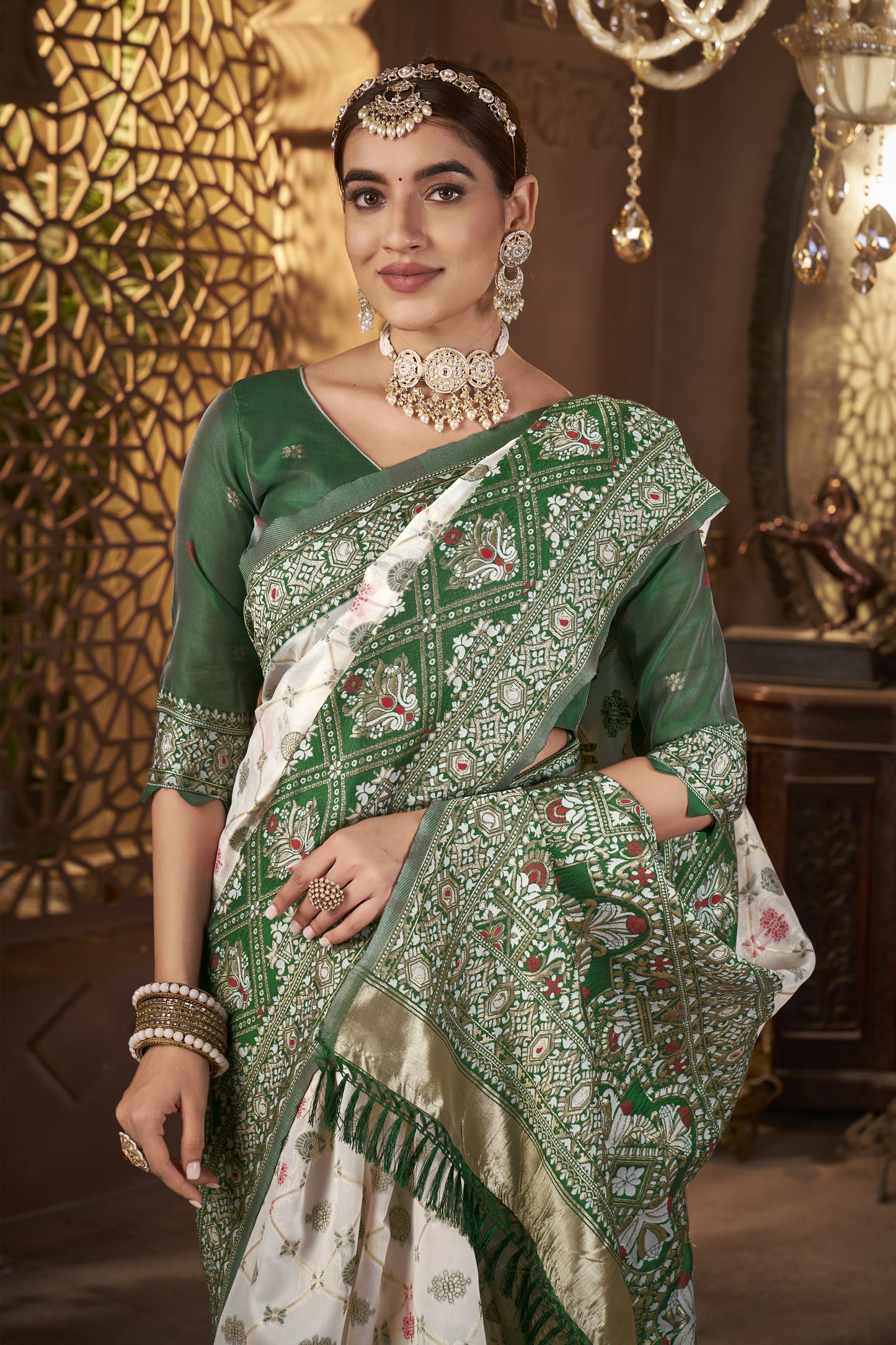 • Weaving: Gold zari weaving