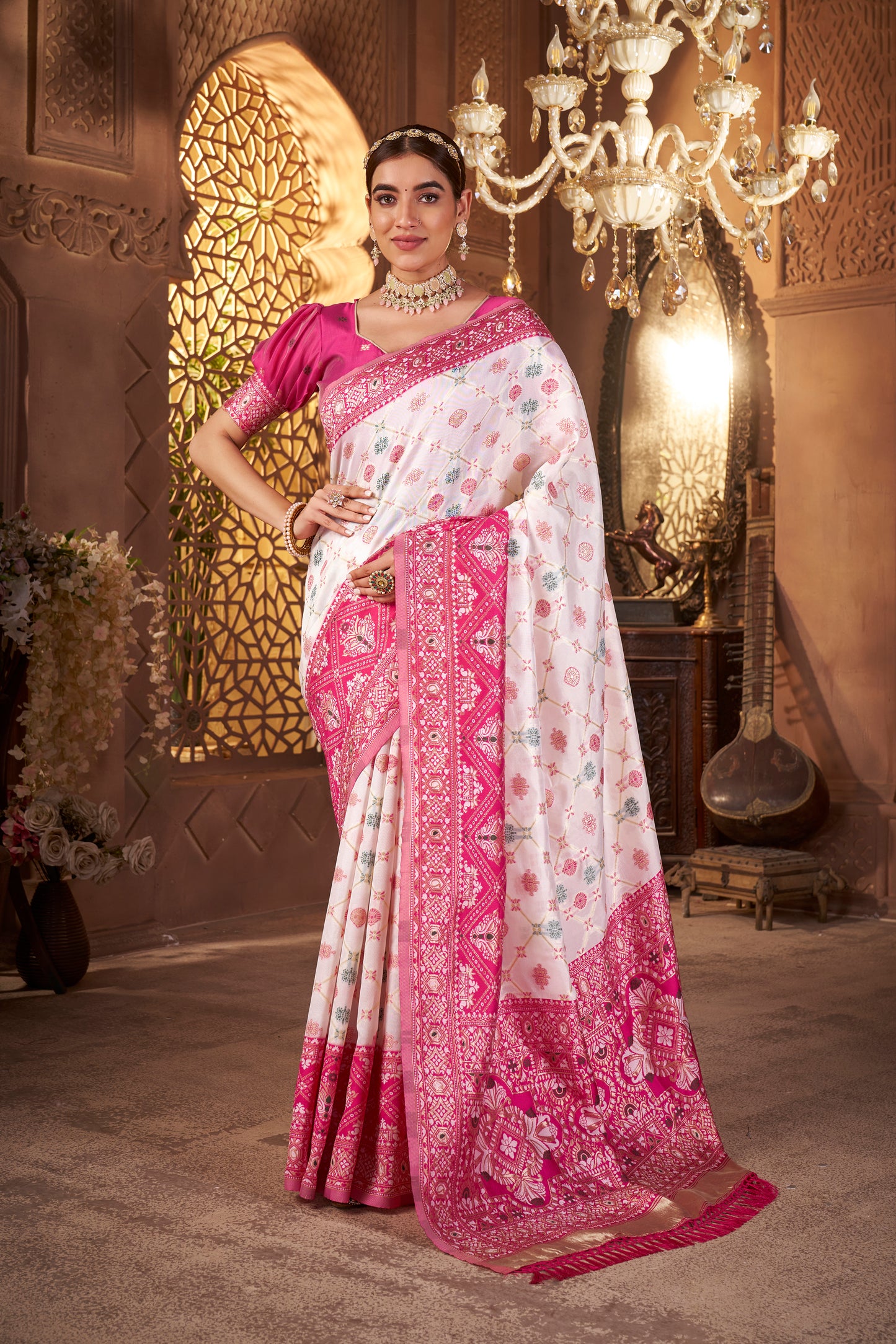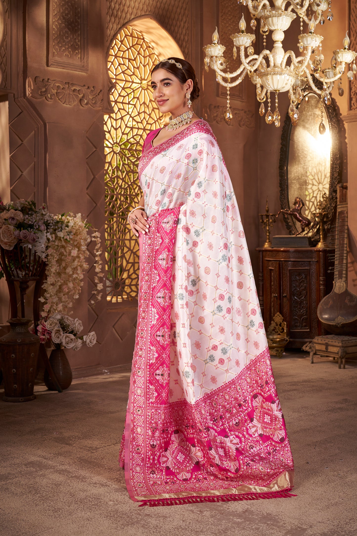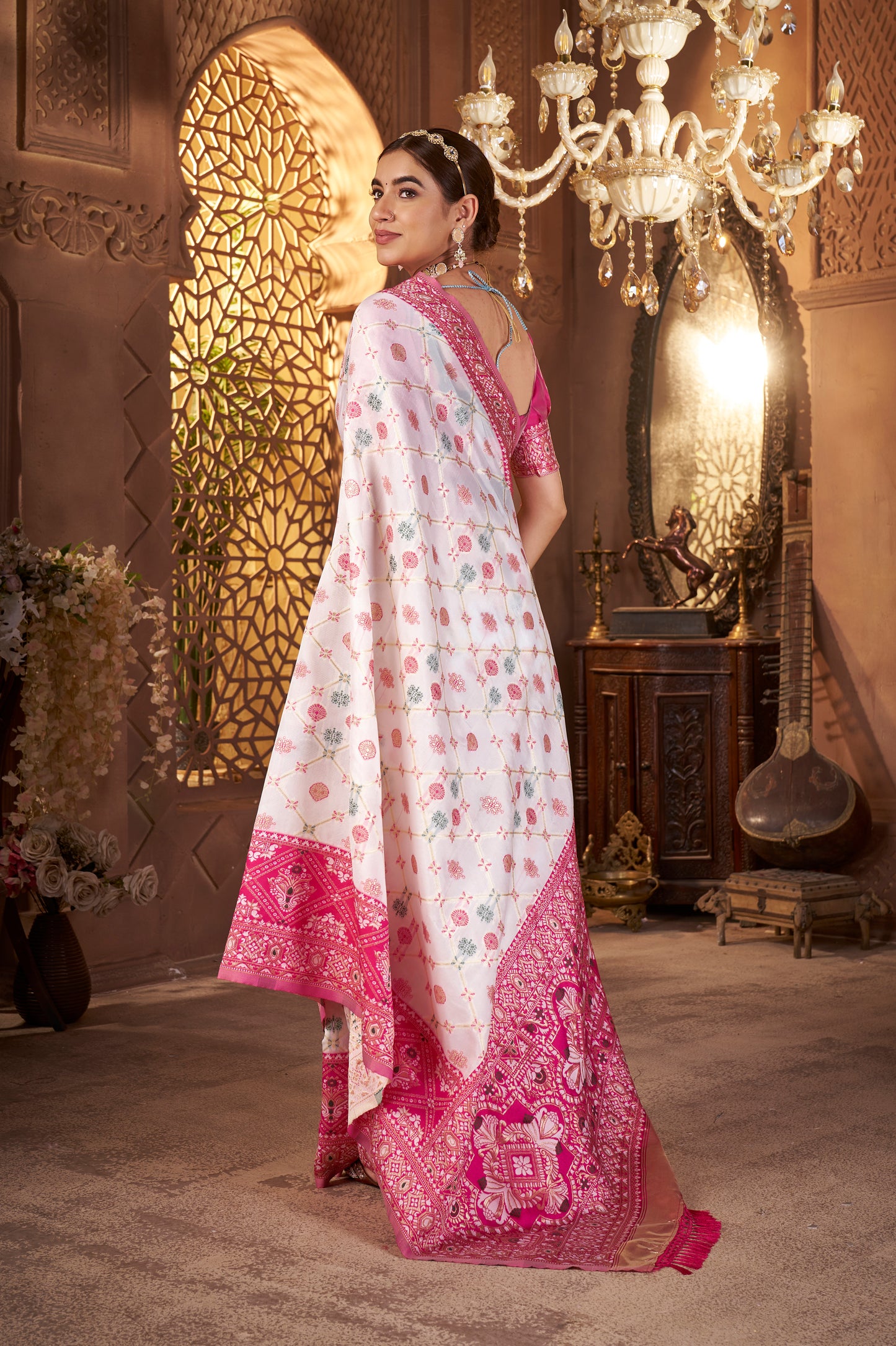 • Work Type: Traditional Bandhani design with floral and elephant motifs