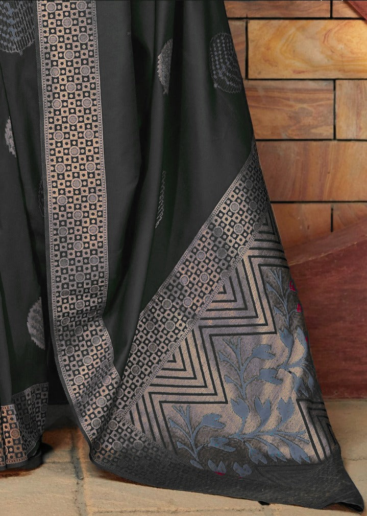 • Work Type: Golden Zari Weaving Jacquard with Rich Pallu