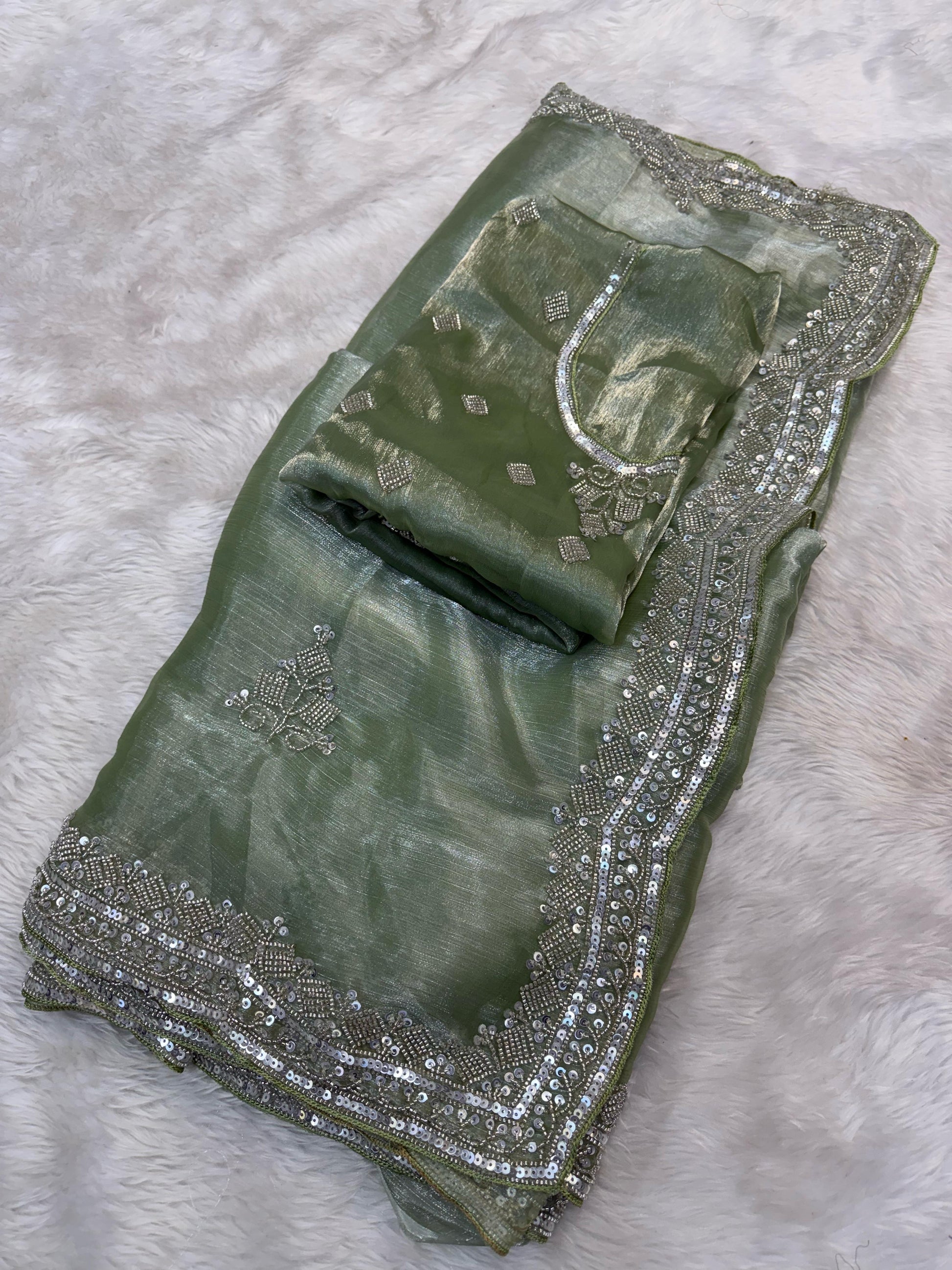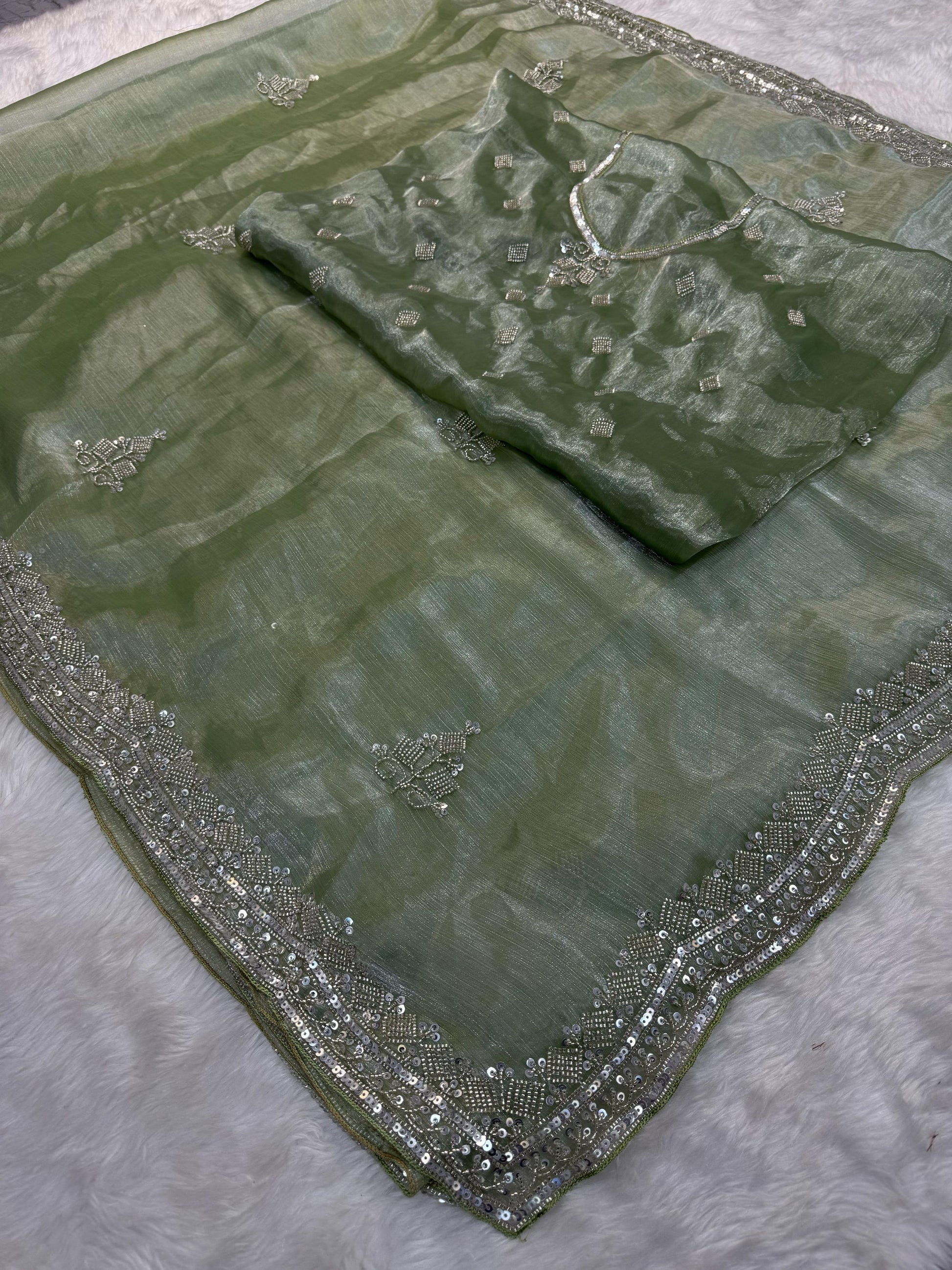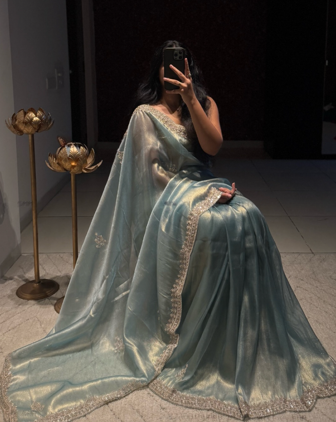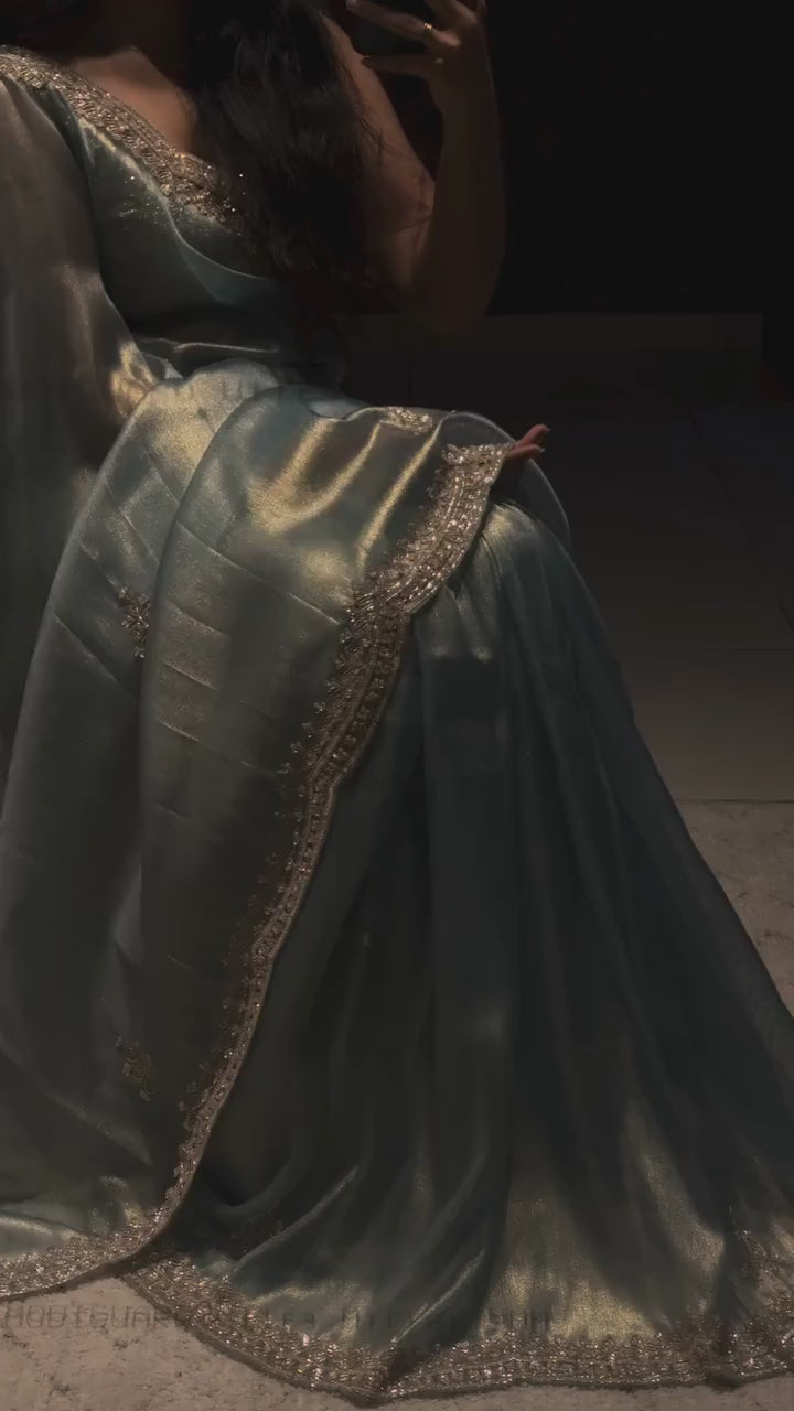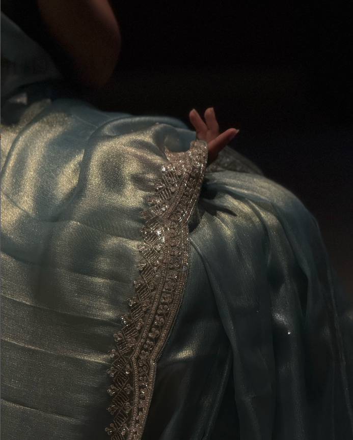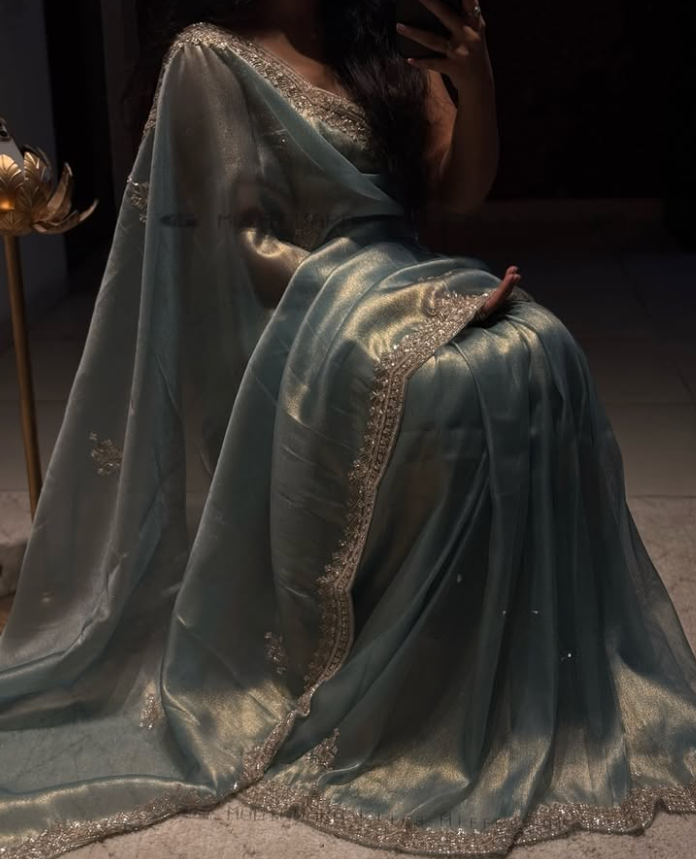 Ethereal Elegance – Pure Embroidery & Hand-Worked Fandy Siffon Saree