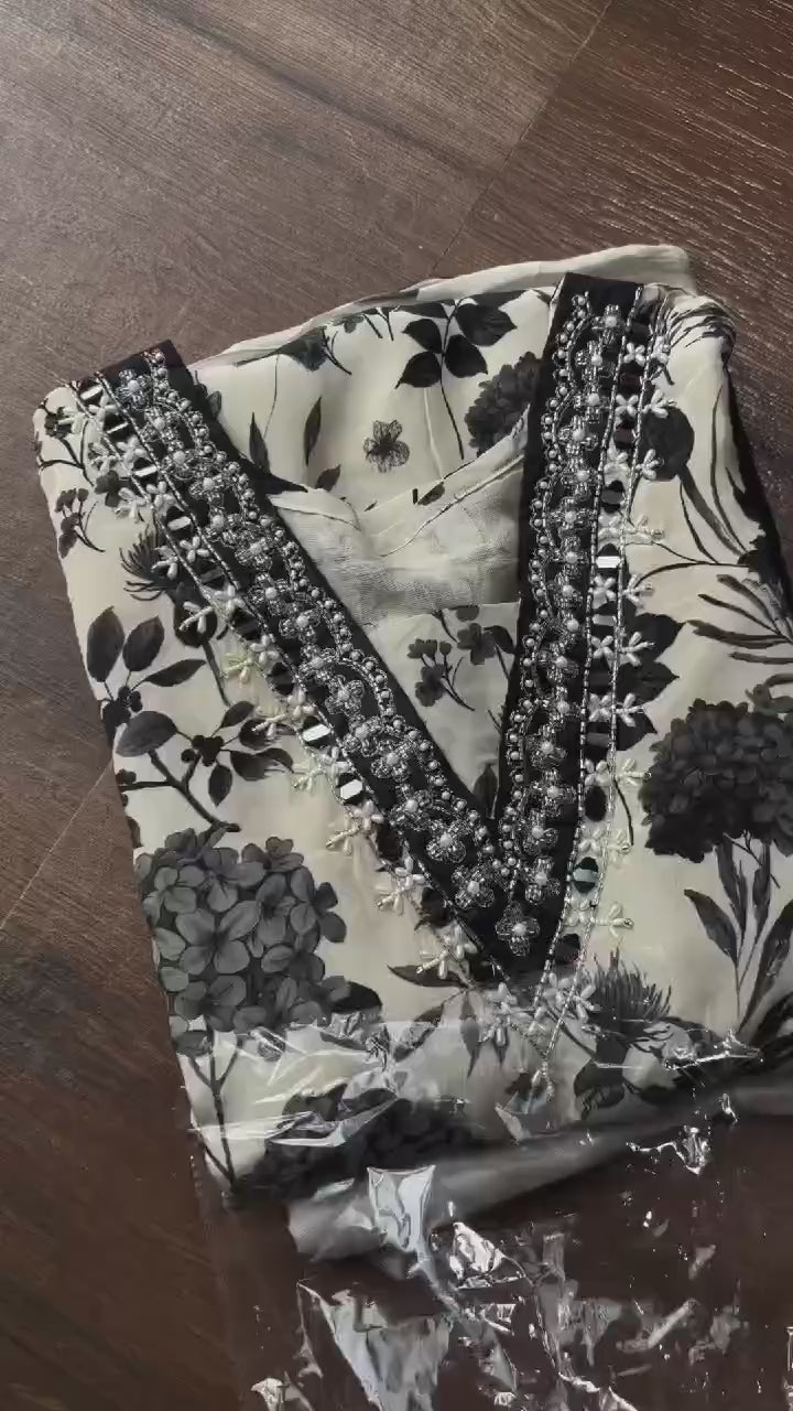 SKU:BHK_ORGANZA SUIT SET_CREAMBLACK_M