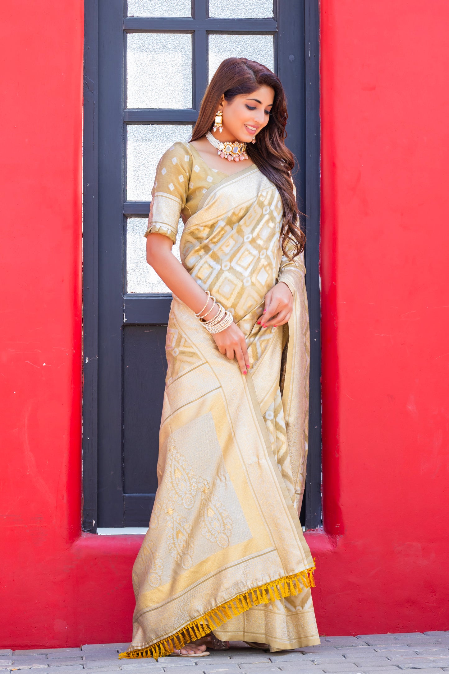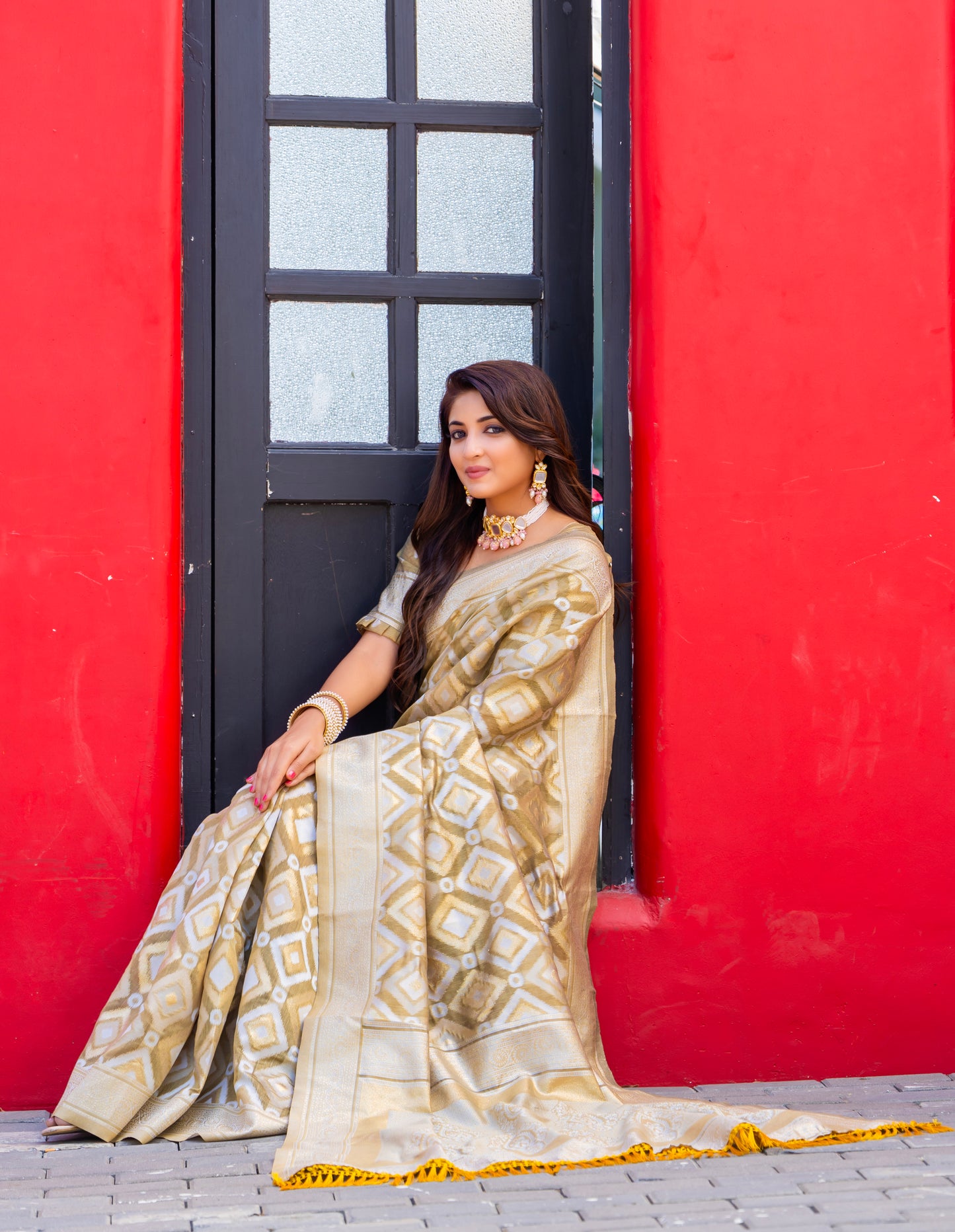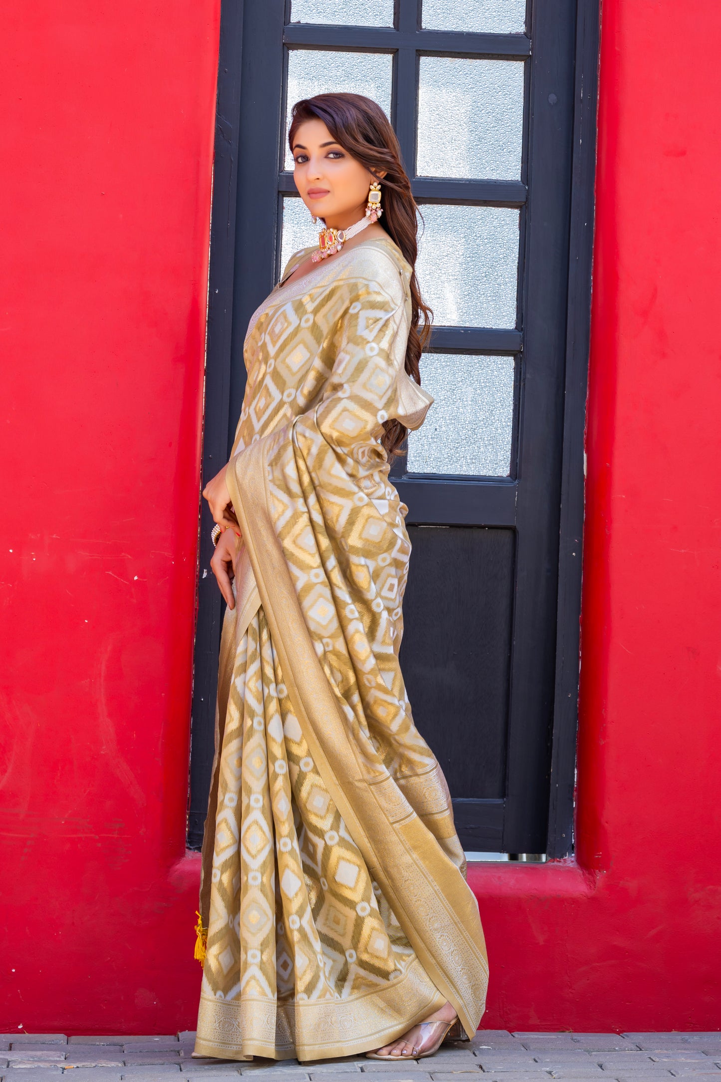 - Work Type: Gold Zari with Traditional Diamond Motifs