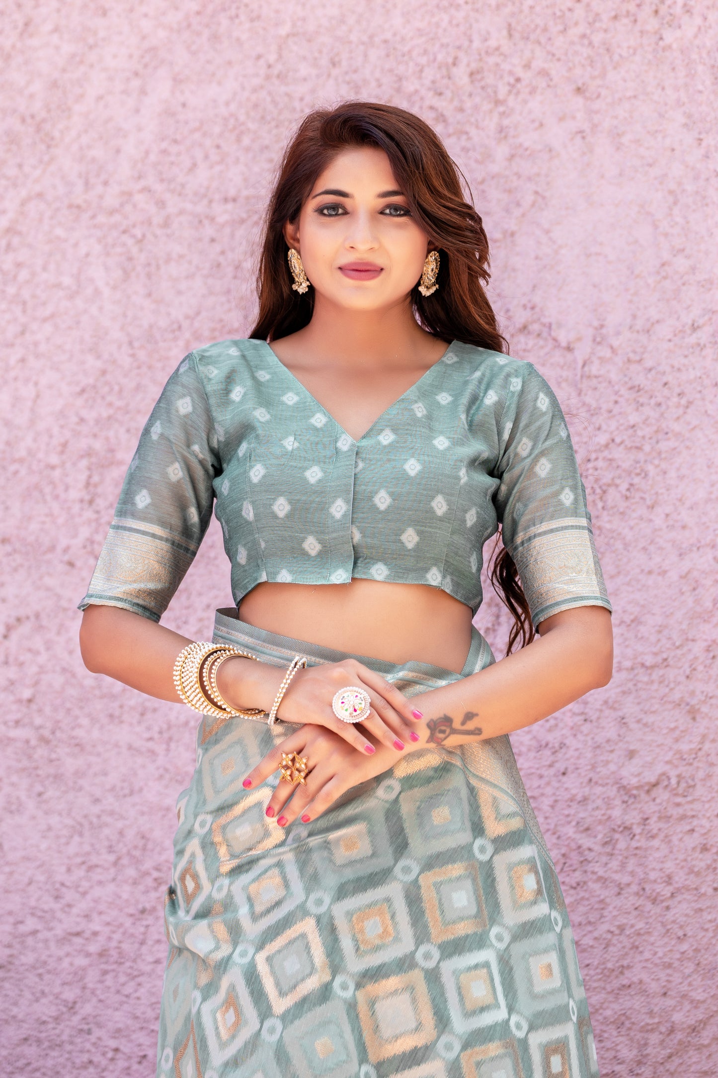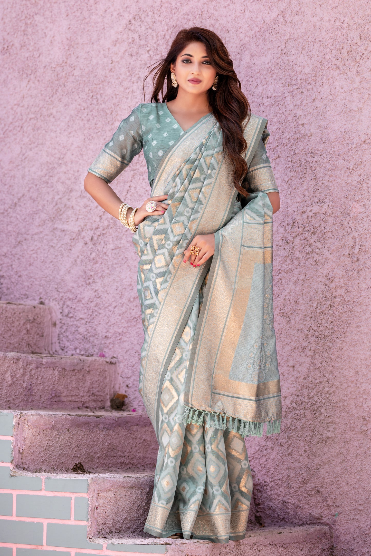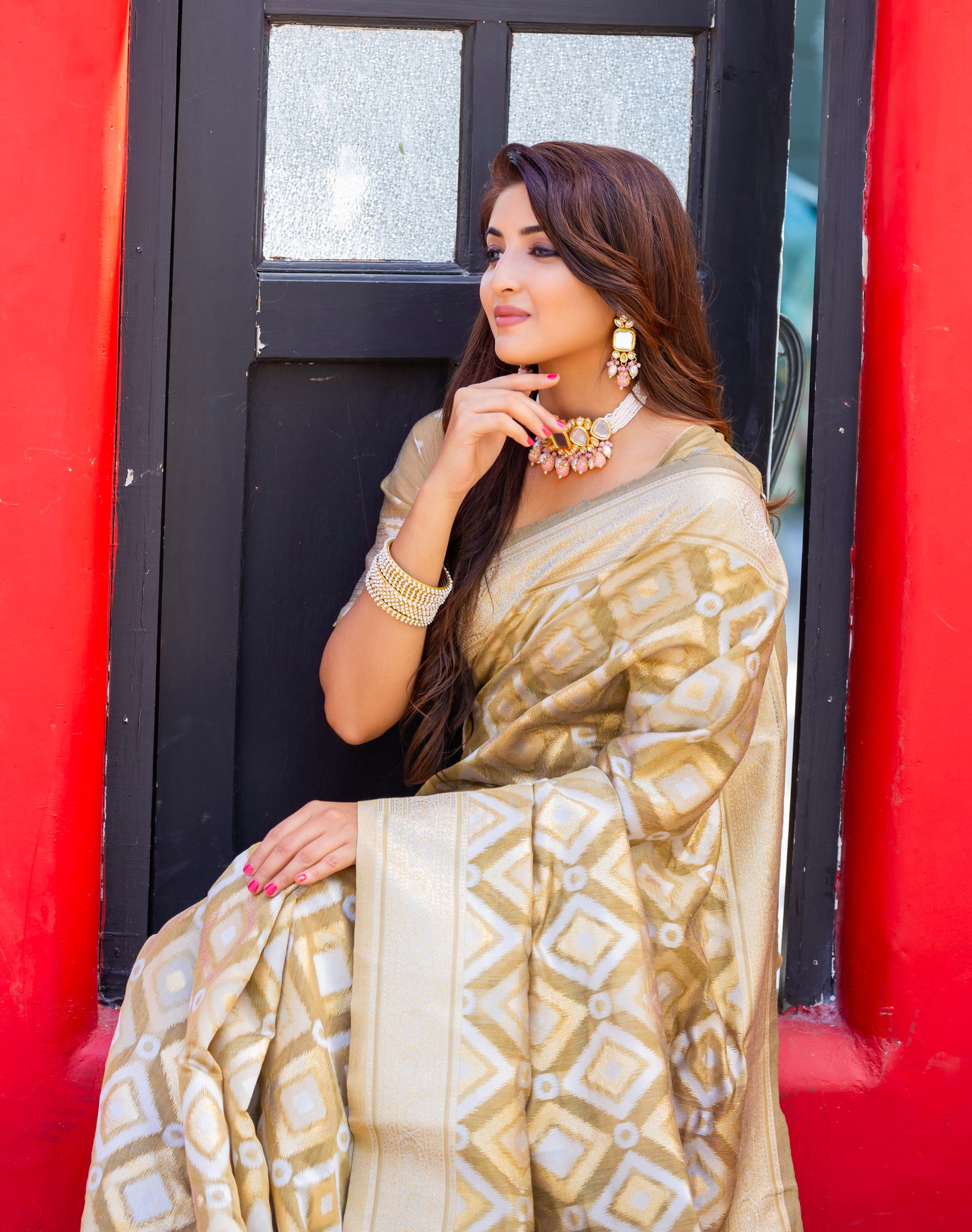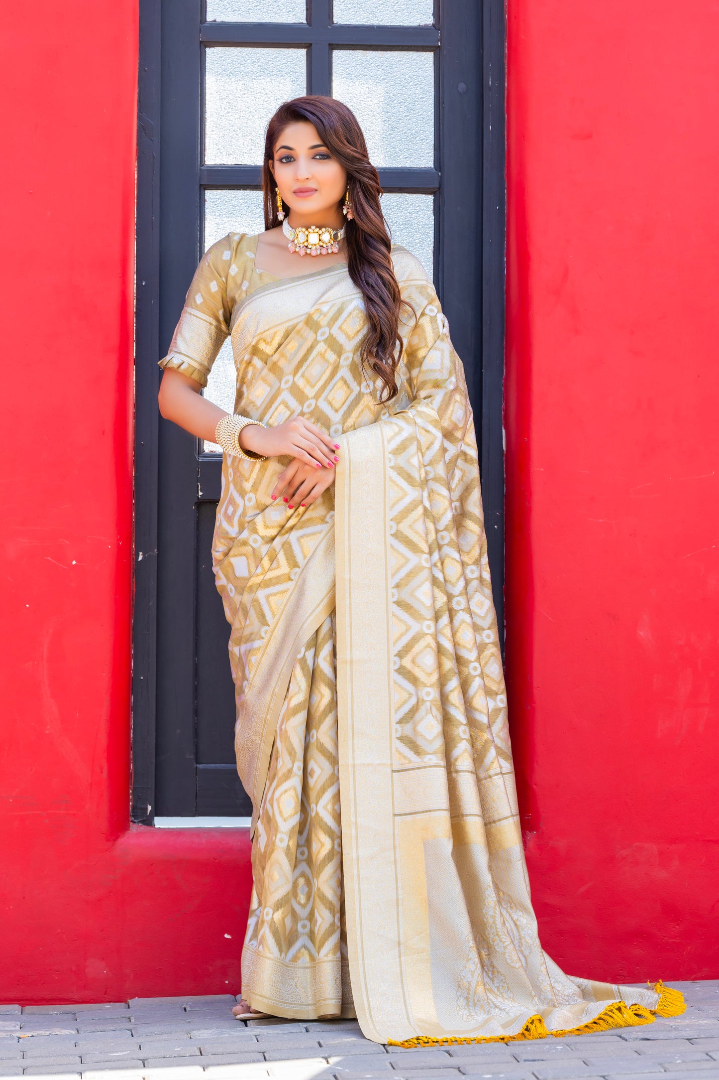 - Work Type: Gold Zari with Traditional Diamond Motifs