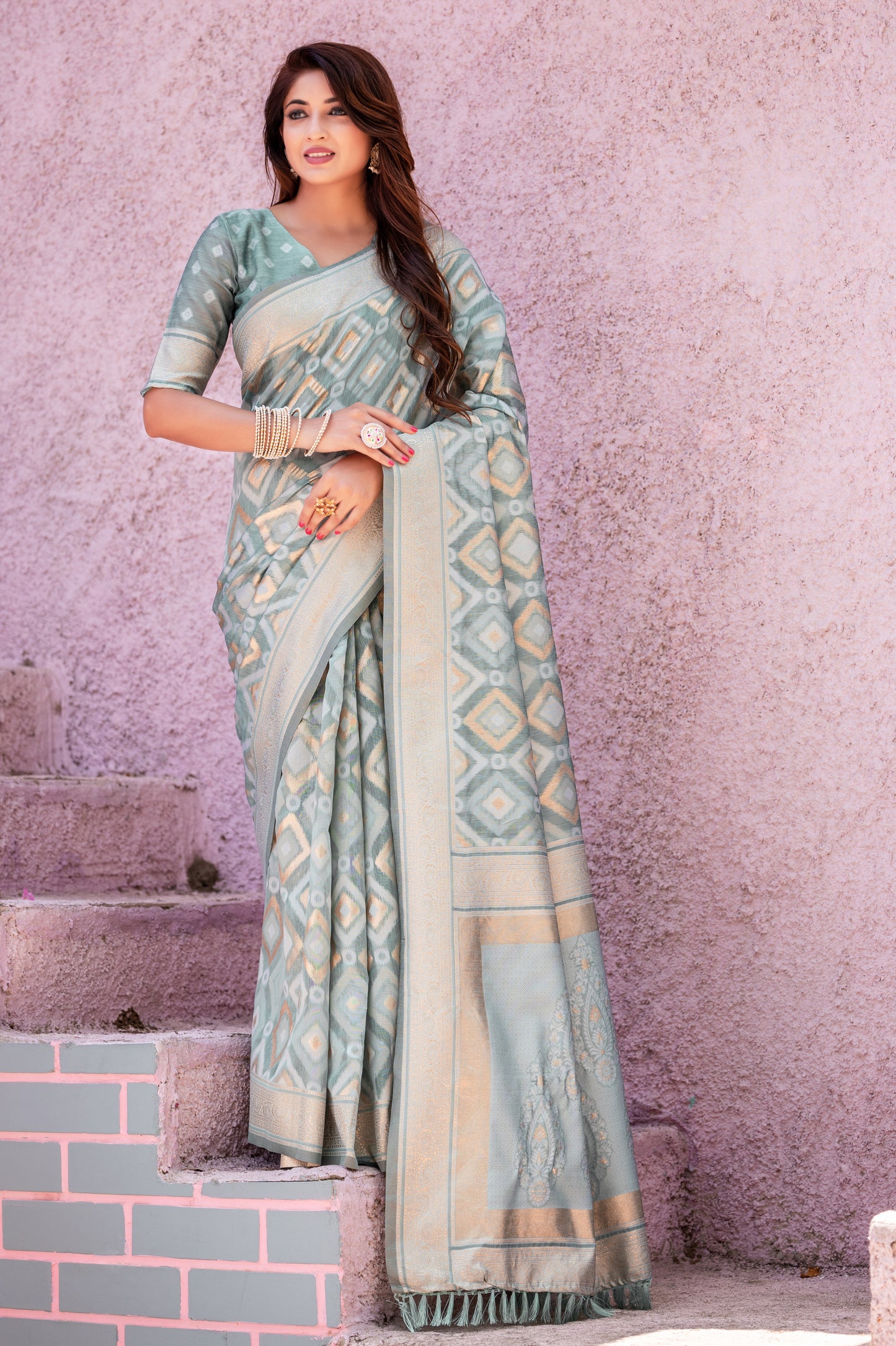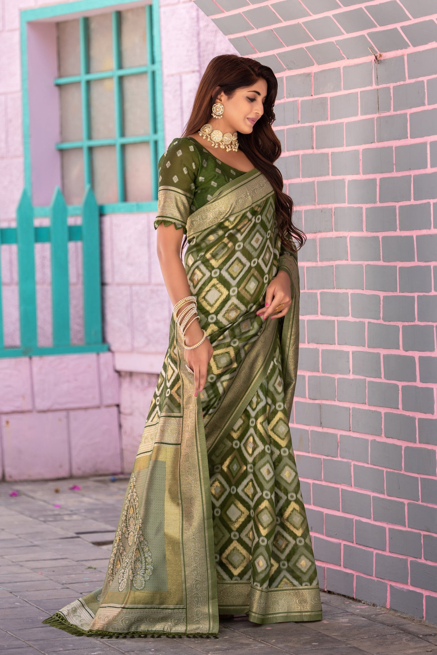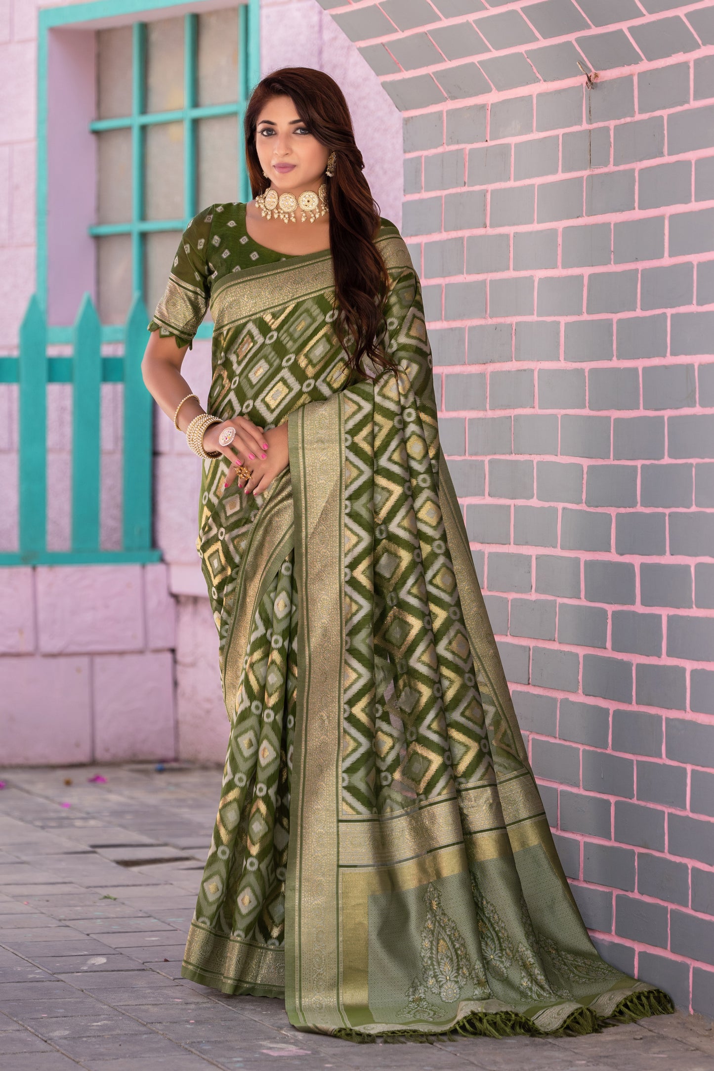 Radiate royal elegance with this luxurious Patola Silk Saree, crafted in a rich, vibrant shade and adorned with magnificent gold zari work. Featuring traditional diamond motifs and intricate detailing along the border and pallu, this saree offers the perfect fusion of timeless tradition and refined glamour. Ideal for weddings, festive celebrations, and grand occasions, it exudes grace and sophistication in every drape.